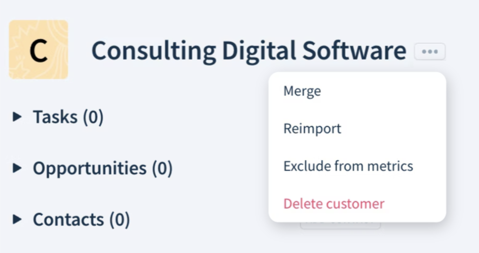 To move a contact to another customer, click the dots, then Move to another customer.