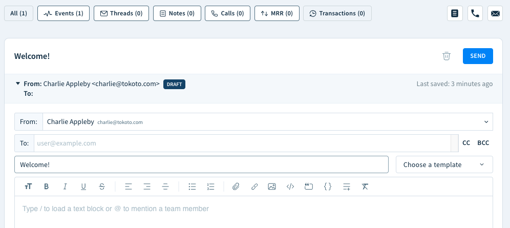 - Sending an email — Compose an email or use an email template.